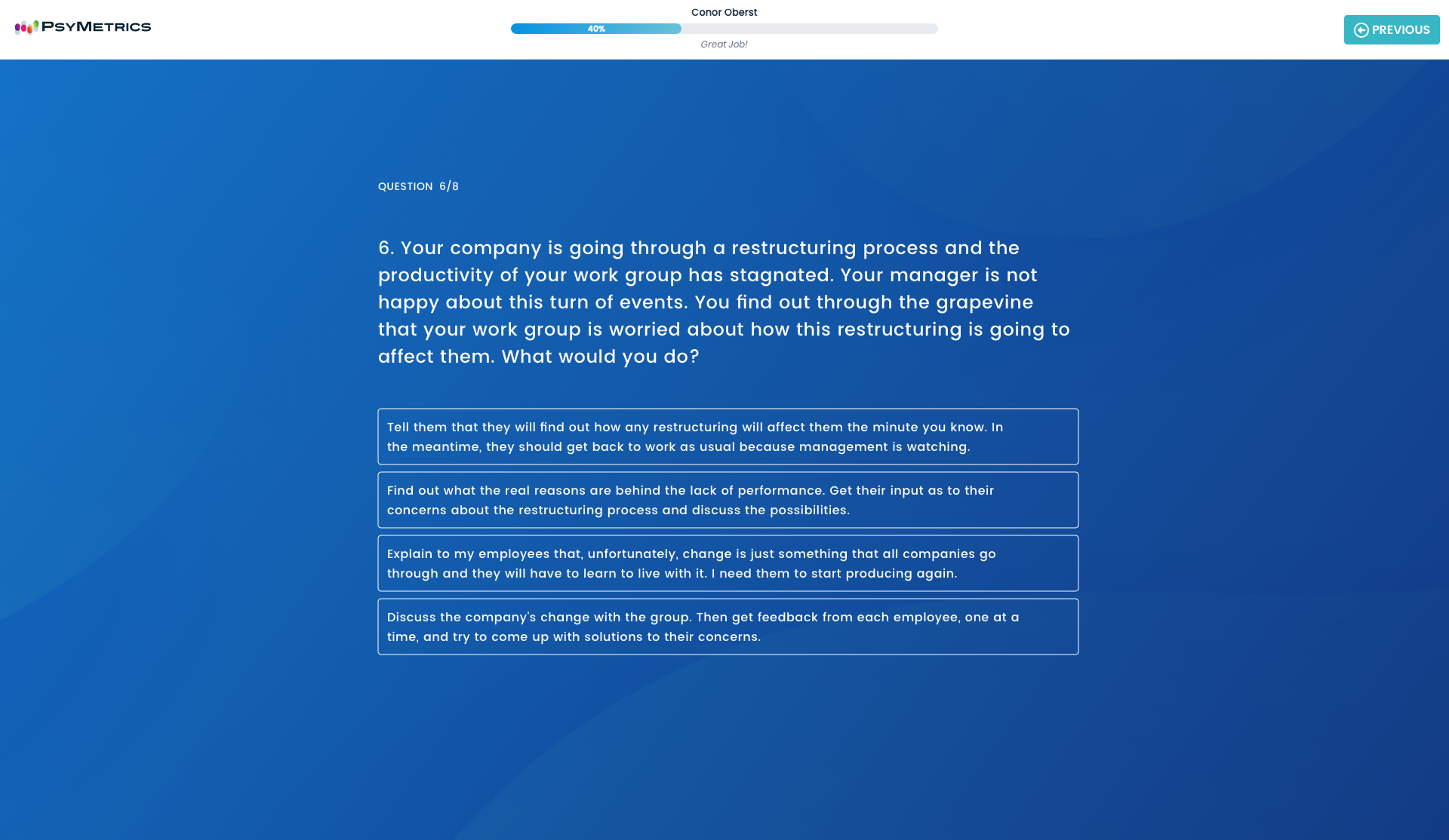 The Situational Judgment Test (SJT) - Manager consists of attitudinal, behavioral and situational questions aimed at assessing the candidate's ability to problem solve and use appropriate judgment while performing the manager function. The test provides an opportunity to objectively assess the management skills of job candidates. It was developed to identify those applicants best able to handle the daily challenges encountered by most managers and supervisors.
