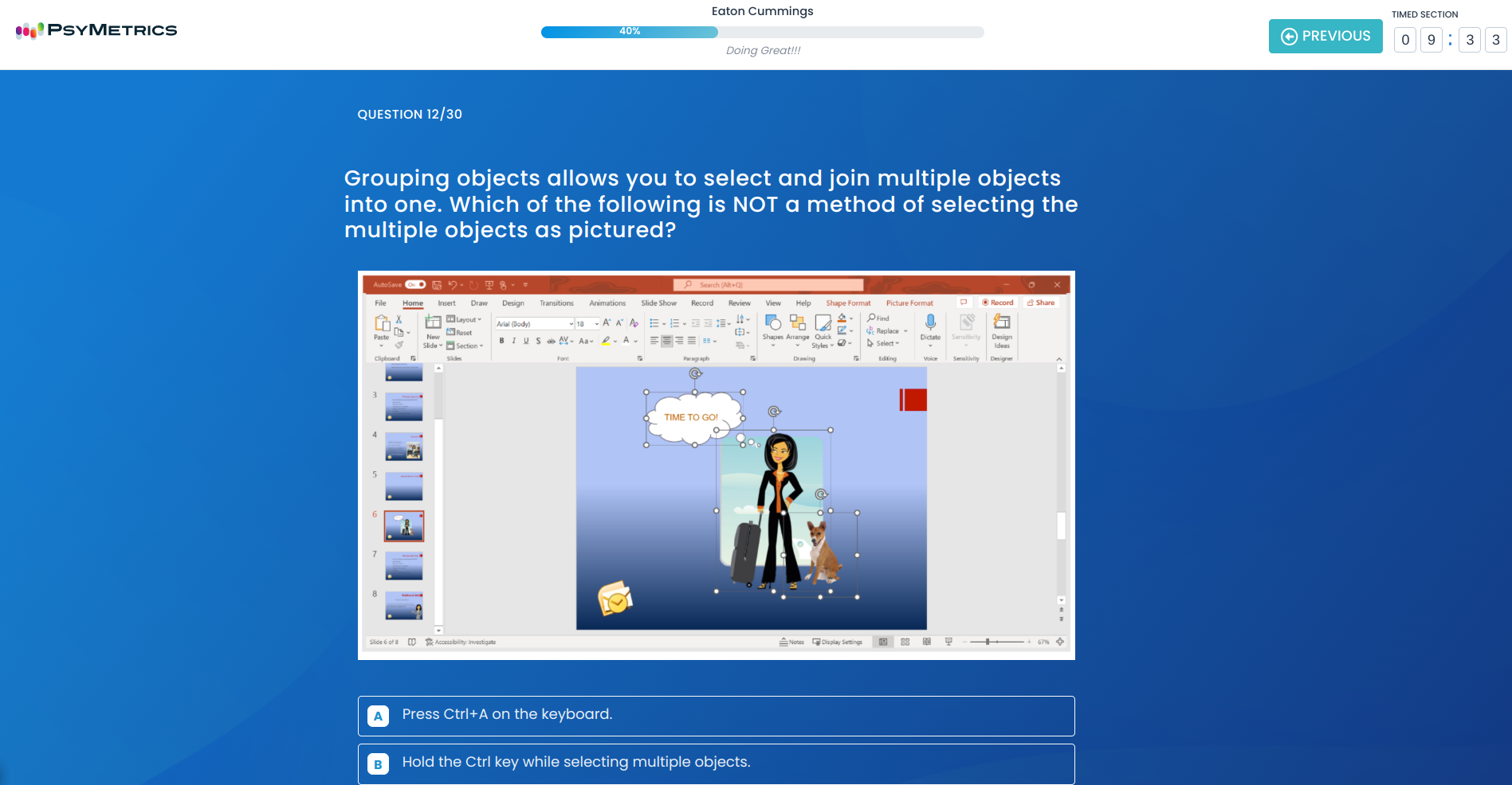 Degree to which the candidate is able to create a presentation using various functions within Microsoft PowerPoint.
