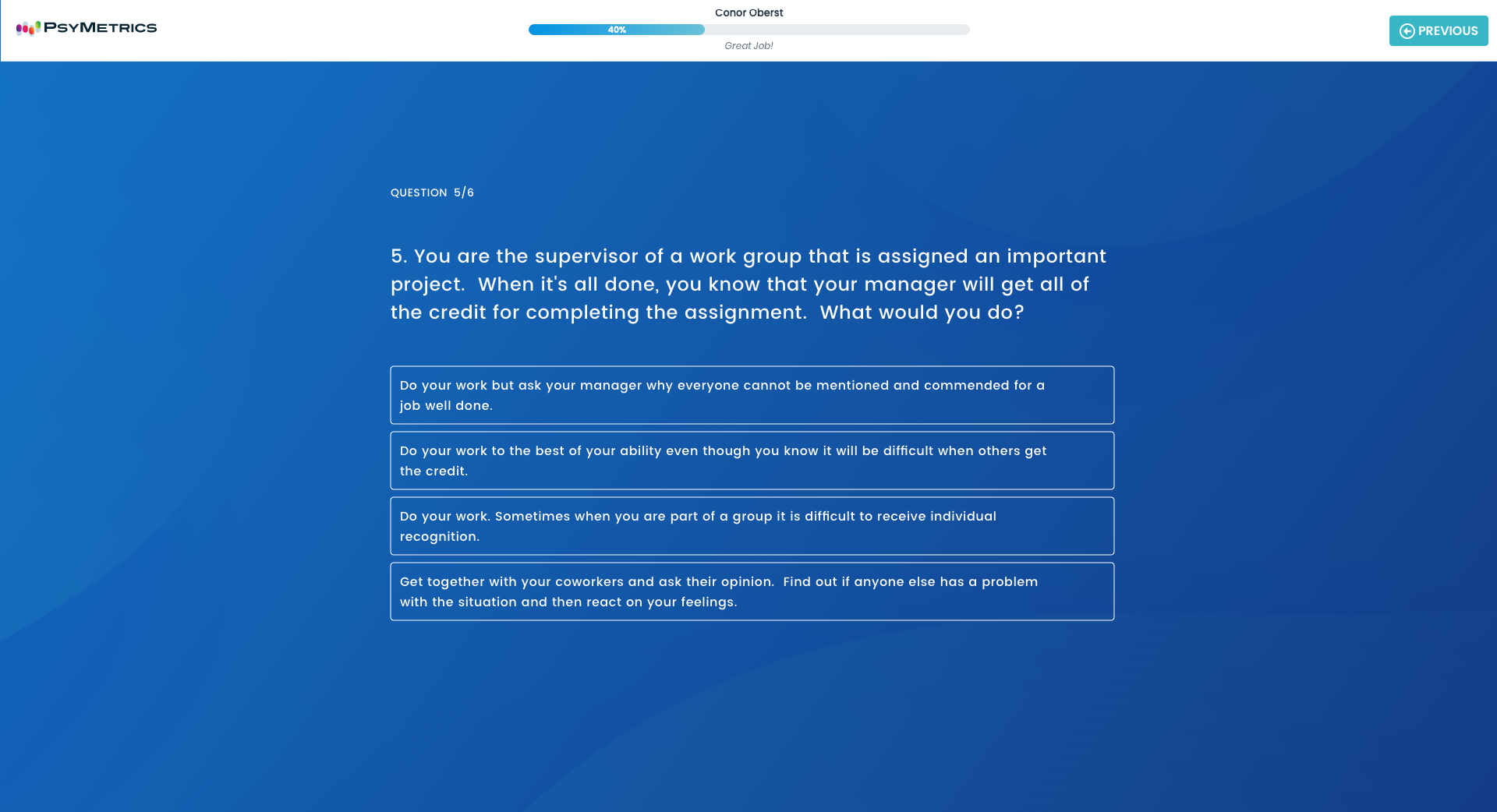 The Situational Judgment Test (SJT) - Supervisor consists of attitudinal, behavioral and situational questions aimed at assessing the candidate's ability to problem solve and use appropriate judgment while performing the supervisory function. The test is designed to help businesses succeed by identifying those individuals with strong supervisory skills, as well as identifying potential areas for development among management staff.