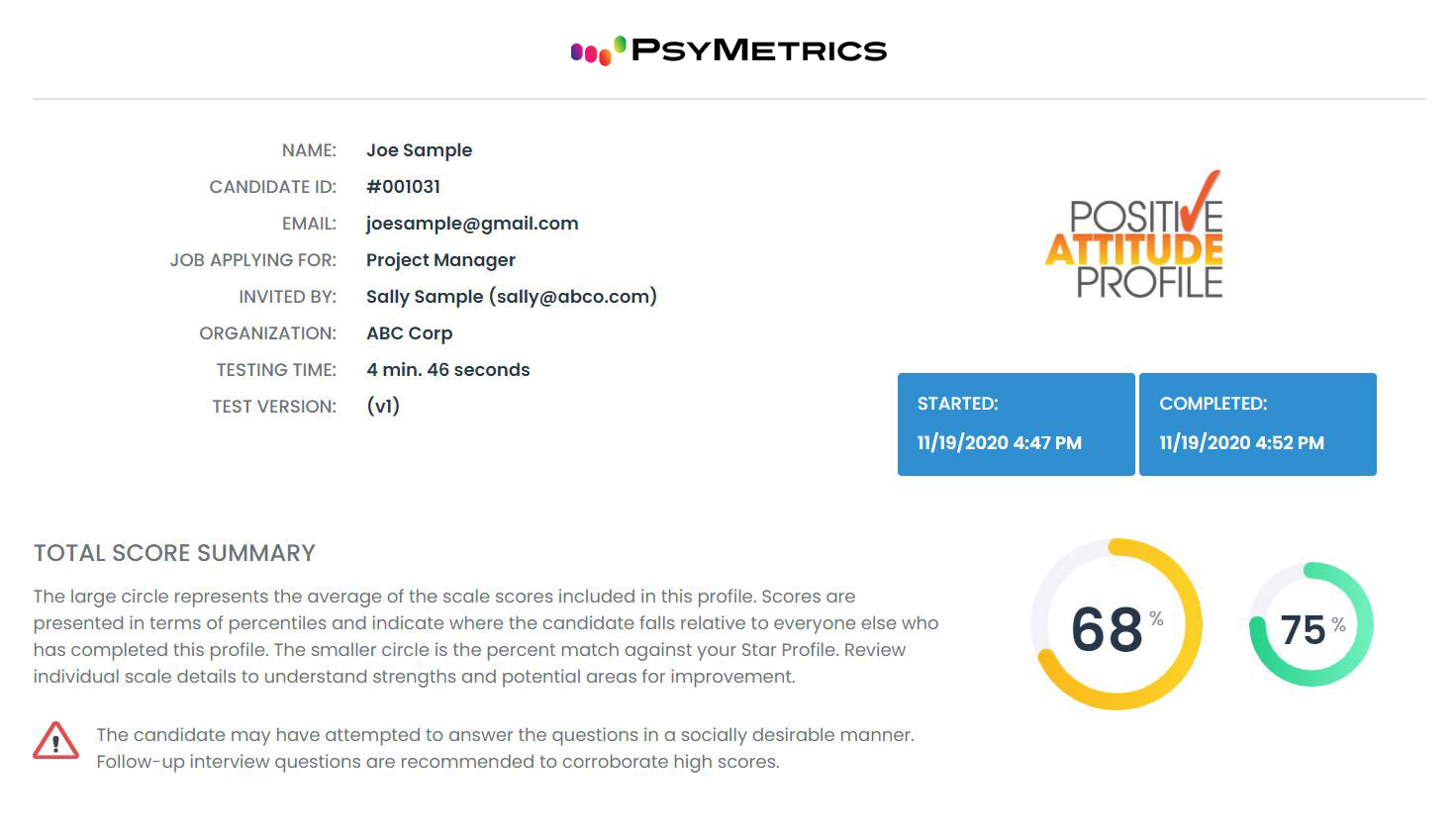 Test scores are based on percentiles so you can see how candidate’s score relative to each other.