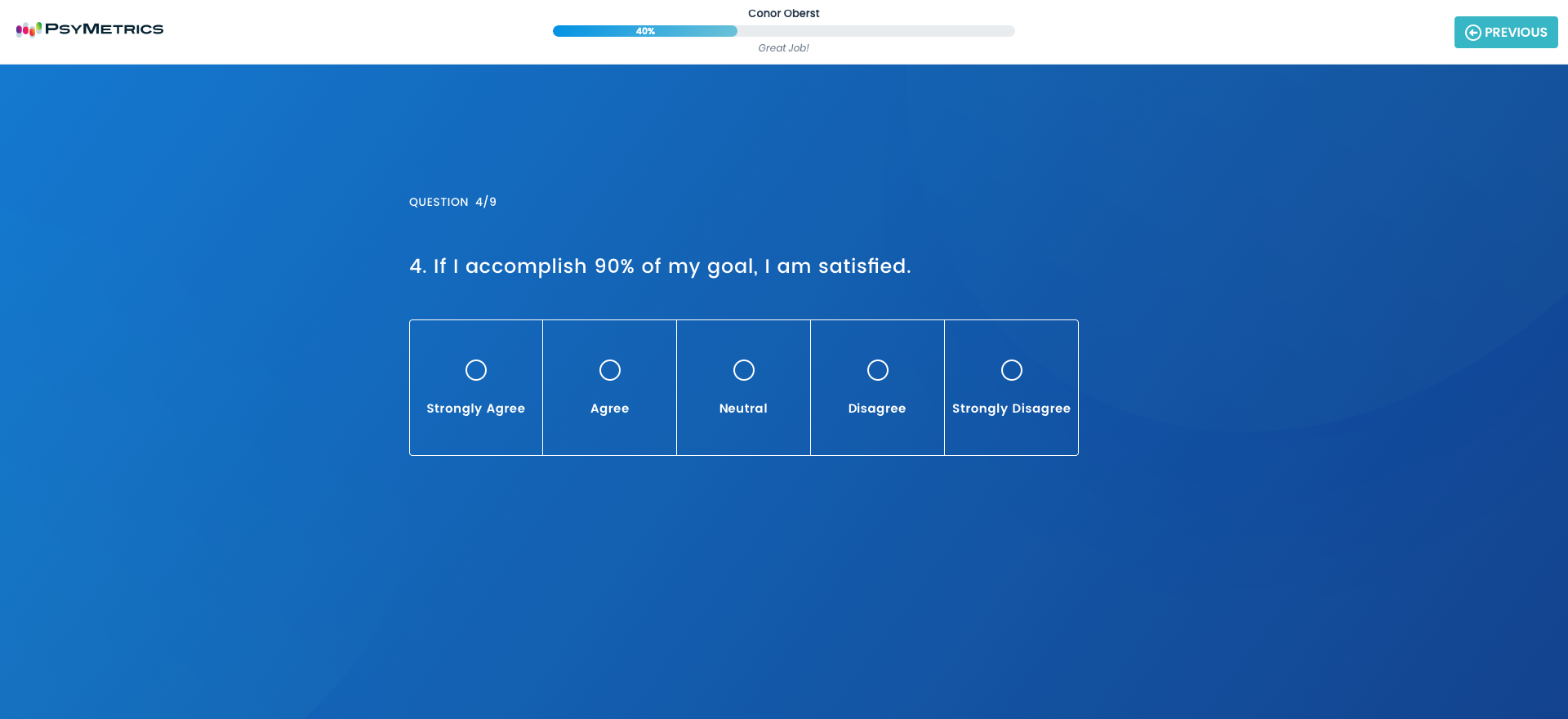 The degree to which the individual is likely to demonstrate patience and stress tolerance during challenging work-related situations. This characteristic is appropriate for jobs requiring interactions with customers, multitasking and jobs in fast paced organizations.